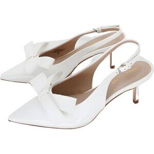 Marc Fisher Allon Bow White Patent Slingback Kitten Heel Pumps US 7M