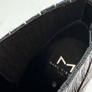 Marc Fisher Alva Croc Embossed Leather Block Heels Booties Black Size 7.5 NEW