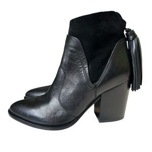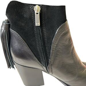 Marc Fisher Ankle Boots Janey Black Leather Suede Ankle Boots 6M Tassels