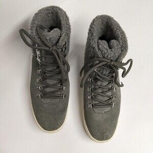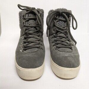 Marc Fisher Ankle Boots Women 6 M Faux Fur Trim Suede Lace Up Gray White Band 6M