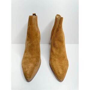Marc Fisher Ankle Boots Womens Size 6.5 Tan Block Heel Suede Leather Booties New