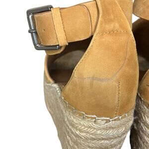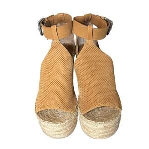 Marc Fisher Annie Camel Leather Platform Espadrille Wedge Sandal Women’s Size 8.5