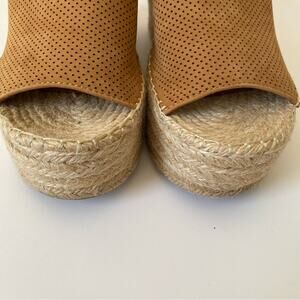 Marc Fisher Annie Perforated Wedge Platform Espadrille Cognac Brown size 9.5