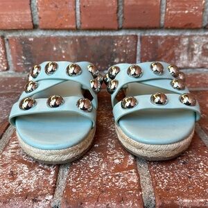 Marc Fisher Aqua Green Prisca Espadrille Slide Sandal Shoes Women's Size 7.5