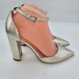 Marc Fisher Arnette Pointy Toe Ankle Strap Block Heel Pumps Gold Leather Women’s Size 6.5
