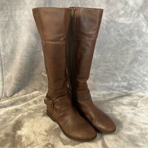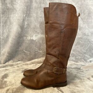 Marc Fisher Aysha Tall Brown Riding Boots Wide Calf Side Zip Leather Size 6.5