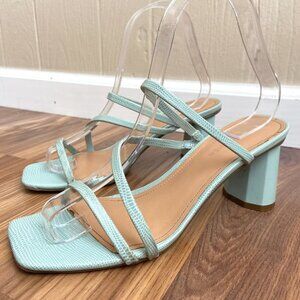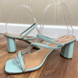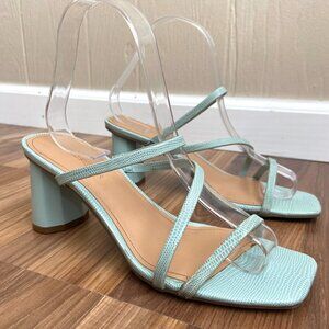 Marc Fisher Baby Blue Snake Reptile 90s Strappy Block Heel Square Toe Sandal Y2K