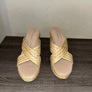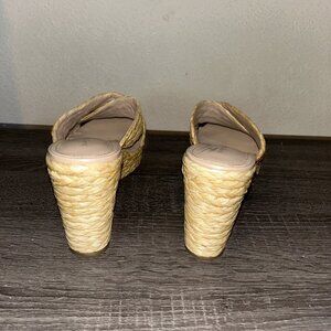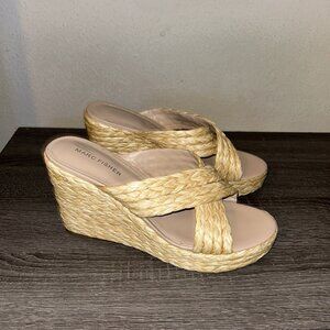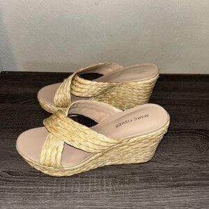 Marc Fisher Beige Lynn Criss-Cross Boho Slip On Wedge Platform Sandals Size 9.5