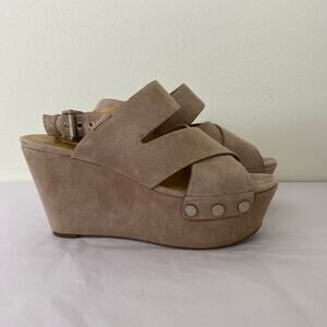 Marc Fisher Bianka Wedges Size 8 Taupe Suede Leather Heels Platform Boho 60s 70s