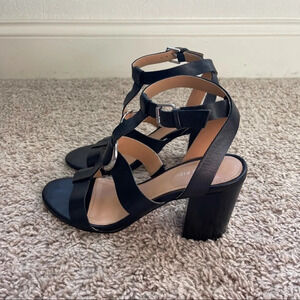 Marc Fisher Black Block Heel Silver Sandals Open Toe Ankle Strap