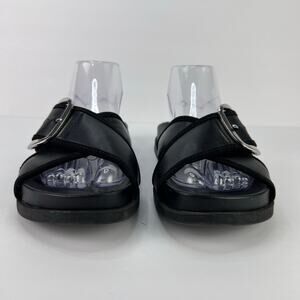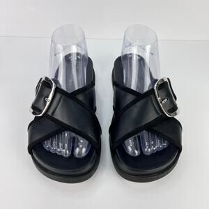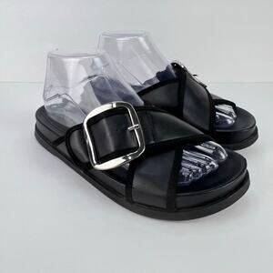 Marc Fisher Black Faux Leather Cross Cross Big Buckle Slide Sandals 7