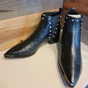 Marc Fisher Black Leather Ankle Booties with Studded Details Womens Size 8 NWOT