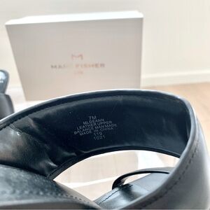 Marc Fisher Black Leather Deann Sculptural Mules Slip on High Heeled Sandals