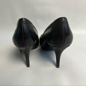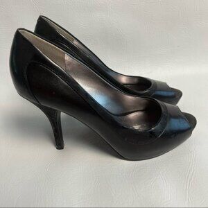 Marc Fisher Black Leather Peep Toe Heels Size 7 M bin 2V