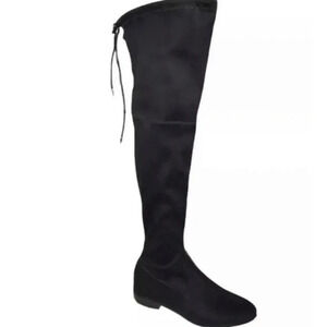 BLACK FAUX SUEDE OVER THE KNEE RIDING BOOTS