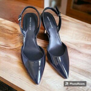 Marc Fisher Black Patent Leather Slingback Pointed Toe Heels-US 9M