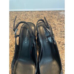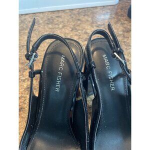 Marc Fisher Black Patent Leather Square Toe Slingback Heels For Women Size 7 1/2
