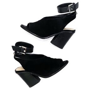 Marc Fisher Black Suede Wedge Chunky Heel Sandal Booties Ankle Strap 8.5
