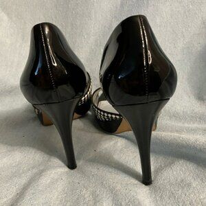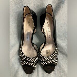 Marc Fisher Black White Pumps Stilettos Checkerboard Faux Patent Leather Size 9