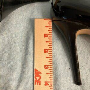 These cute faux, patent leather stilettos are in good condition. There’s normal wear and tear with slight scuffs.