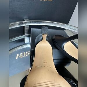 Step out in style in these super cute leather black heels with woven front. Modern and versatile style. Worn only a few times. Still giving life!