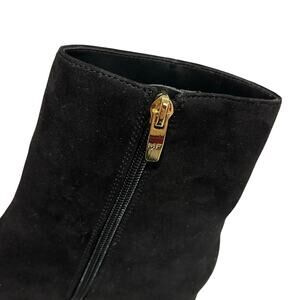 Marc Fisher Black faux suede ankle boots pointy toes mid-high block heels US 7.5M. Fantastic classic look that will go with everything! In excellent condition - these could be mistaken for brand new!
