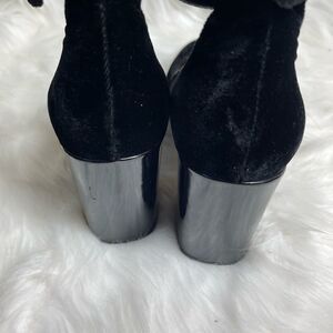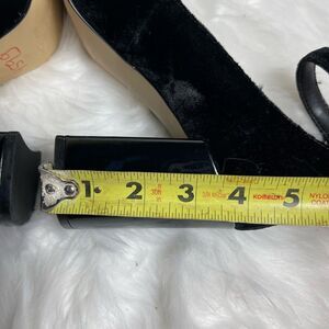 Marc Fisher Black velvet ankle strap patent synthetic leather block heel…