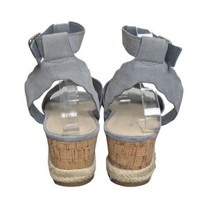 - Details: Scalloped trim, adjustable ankle strap with buckle closure, lightly padded footbed, cork and espadrille platform wedge, grip sole