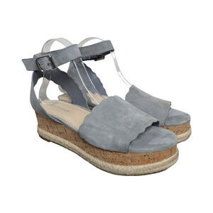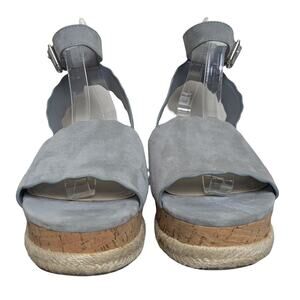 Marc Fisher Blue Suede Faitful Scalloped Wedge Espadrilles 8.5