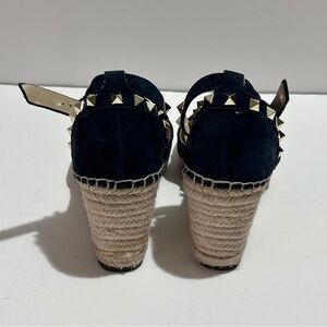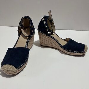 Marc Fisher Blue and Tan Espadrille Wedge Sandals