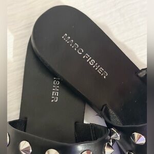 Bold black sandals with striking silver studs. Perfect for a modern look.