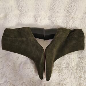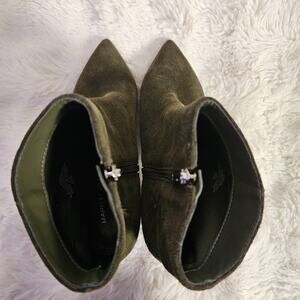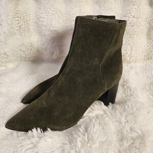 Marc Fisher Boots Size 8.5M Retire Green Suede Heeled Ankle Booties Pointed Toe