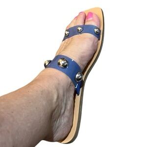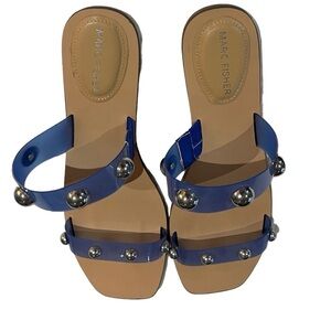 Marc Fisher Bornie Sandals Blue Lucite with Silver Studded Double Straps Sz 11