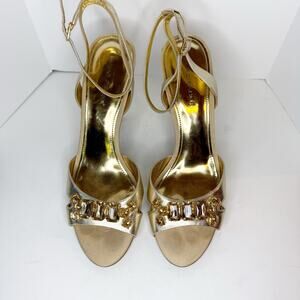 Marc Fisher Braseli Gold Rhinestone Embellished Ankle-Strap Sandals Size 7