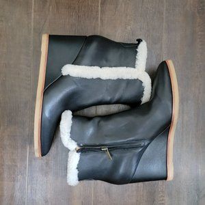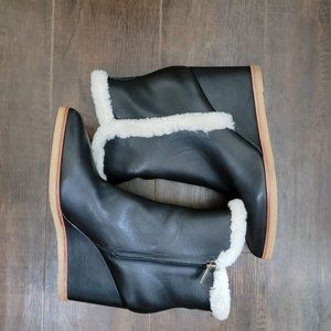 Marc Fisher Brendan Black Boot Wedge Shearling Women's 8.5 MSRP $239
