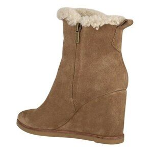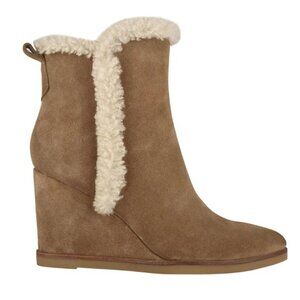 Marc Fisher Brendan Genuine Shearling Wedge Tan Bootie Sz 9 NWOB
