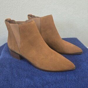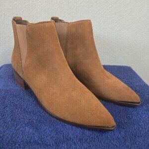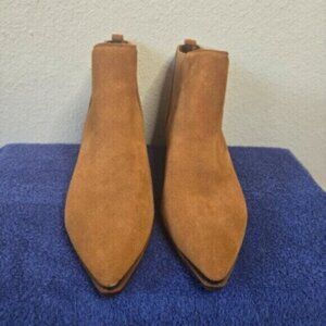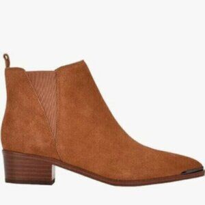 MARC FISHER Tan Brown Goring Metallic Yale Pointed Toe Block Heel Leather Booties