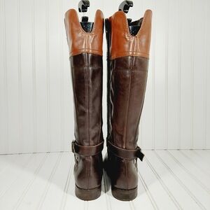 Marc Fisher Brown Leather Knee High Riding M-Wide Calf Buckle Straps Boots C138