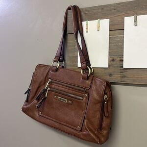 Marc Fisher Brown Zip Code Buckle Saddle Handbag