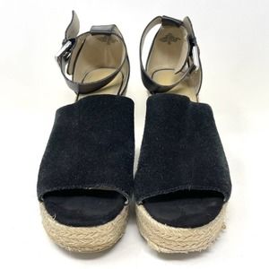 Marc Fisher Cala Wedge Black Suede Platform Espadrille Sandal Women's Size 9M