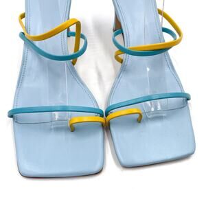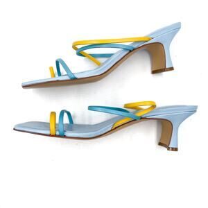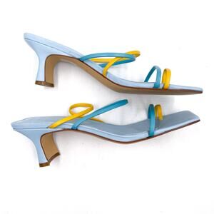 New Marc Fisher Calida Sandals Blue Yellow Leather Strap Square Open Toe Sz 10
