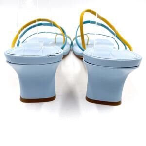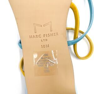 Marc Fisher Calida Sandals Blue Yellow Leather Strap Square Open Toe Sz 10