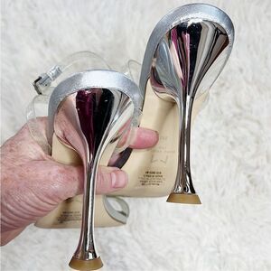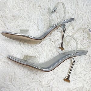 Marc Fisher Calisty Strappy Heeled Sandal Glitter Clear Strap Size 8M Nwot