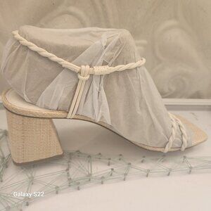 Marc Fisher "Carys" Ivory Block Heeled Braided Sandals. NIB. Size 11. NIB/Box has minor damage and no lid. Smoke free home. No odors. All offers are welcome. Thank you!