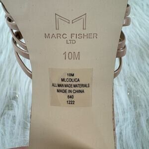 Marc Fisher Colica Block Heel Sandals Tan Woven Mules Slip On Summer Size 10M