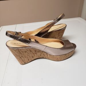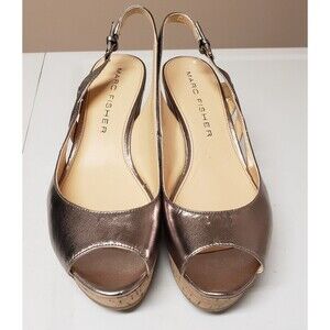 Marc Fisher Cork Wedge Open Toe Golden Slingback Summer Sandal Sz 10M NWOB