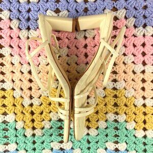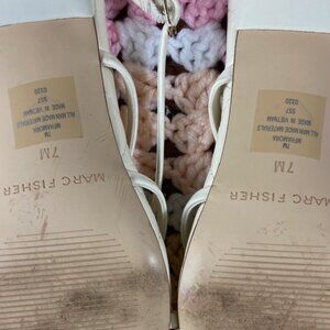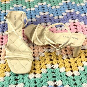 Marc Fisher Cream Off White Quilted Strappy Sandals Heels Hamora 7 M Square Toe