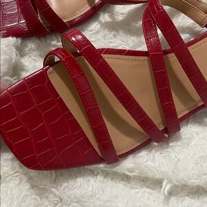 Elegant red sandals with strappy design. Croc-embossed texture adds sophistication. Ideal for stylish outings.