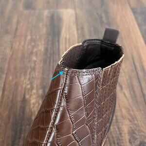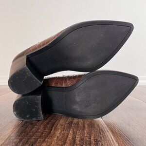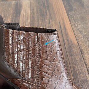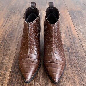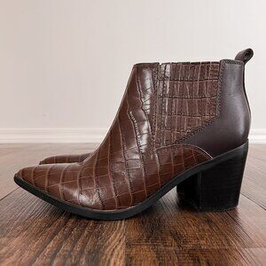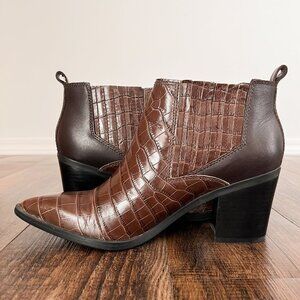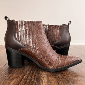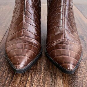 Marc Fisher Croc Embossed Faux Leather Ankle Bootie Pointed Toe Size 8.5 Brown