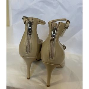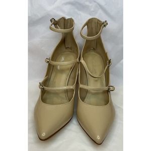 Marc Fisher Dabney Block Heels Nude Patent Buckle Strap 6 Zip Heel Pointed Toe